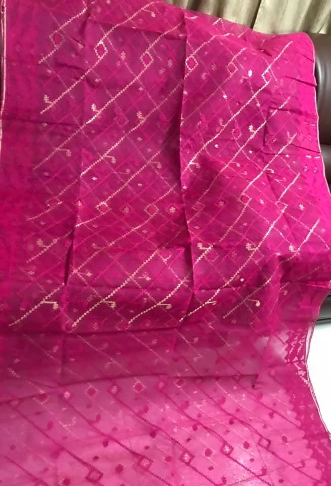 60/80 Count Half Silk Cotton Authentic Jamdani Saree by Shutlizz